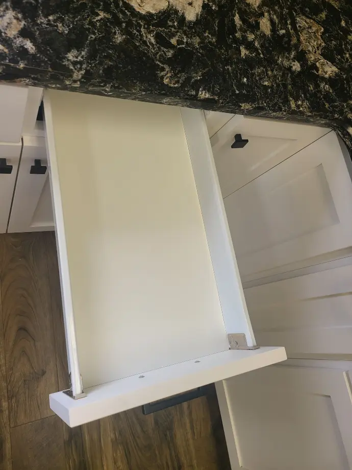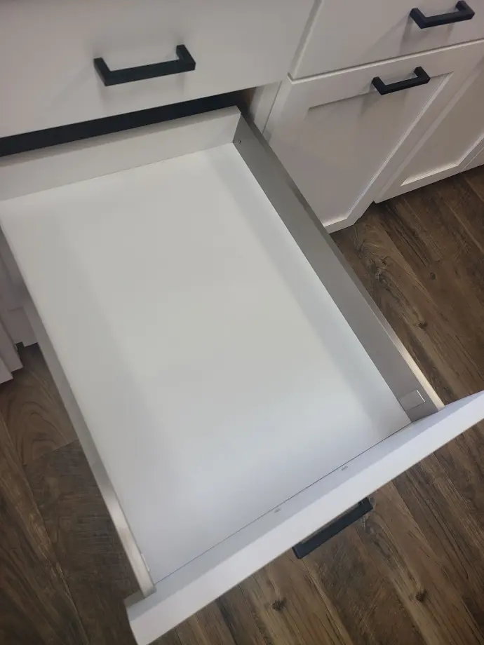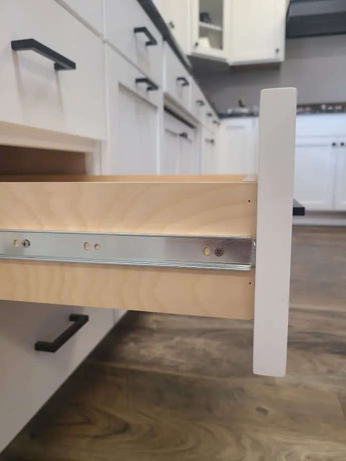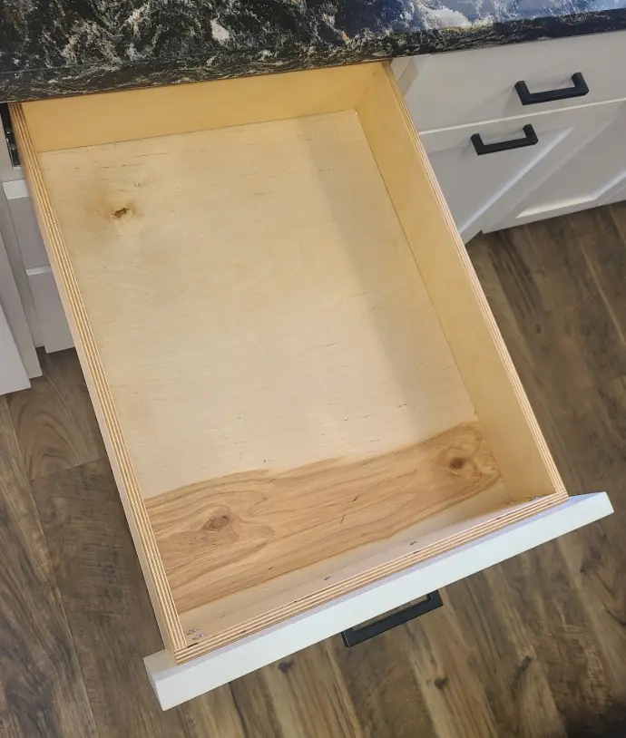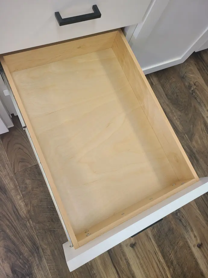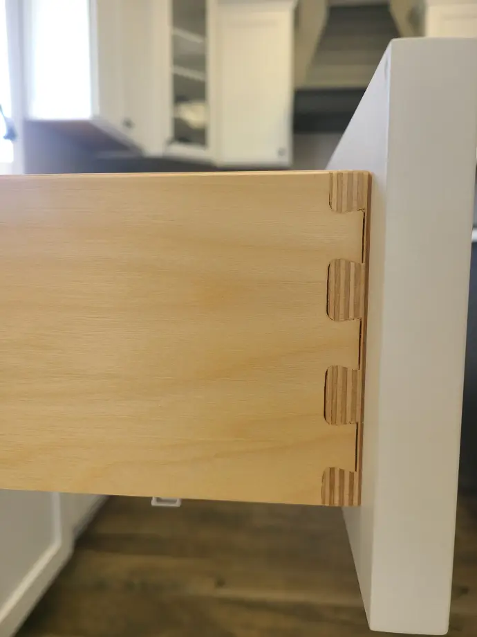 Crafted of ½” birch plywood and joined with interlocking “tails” and “pins” and finished with a clearcoat, this is a top-quality, durable drawer style.