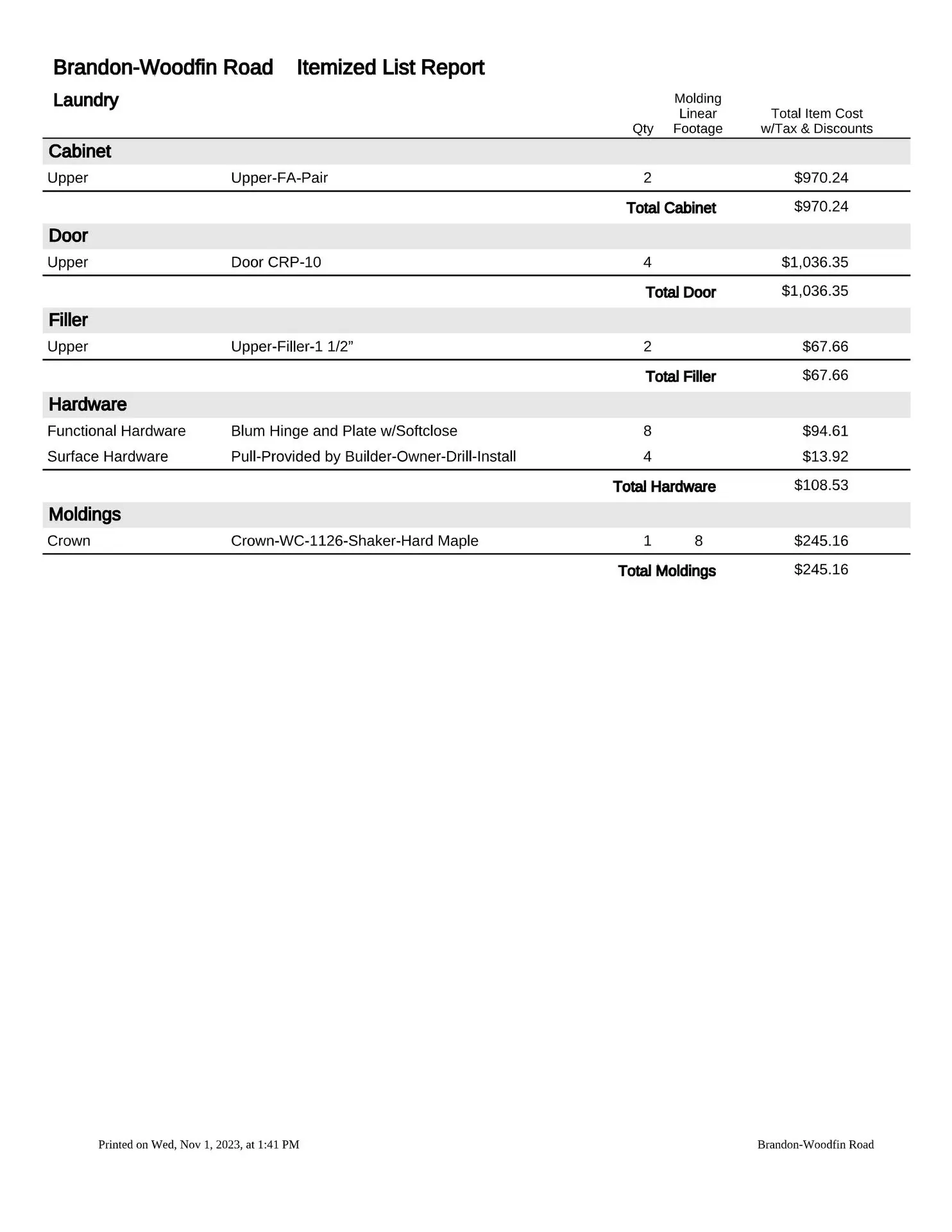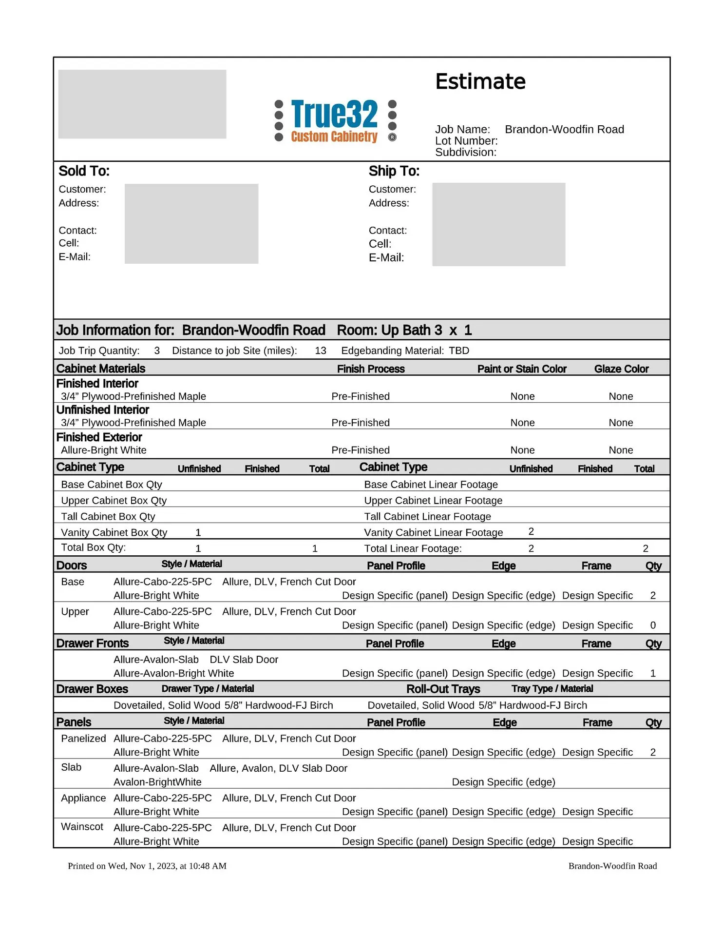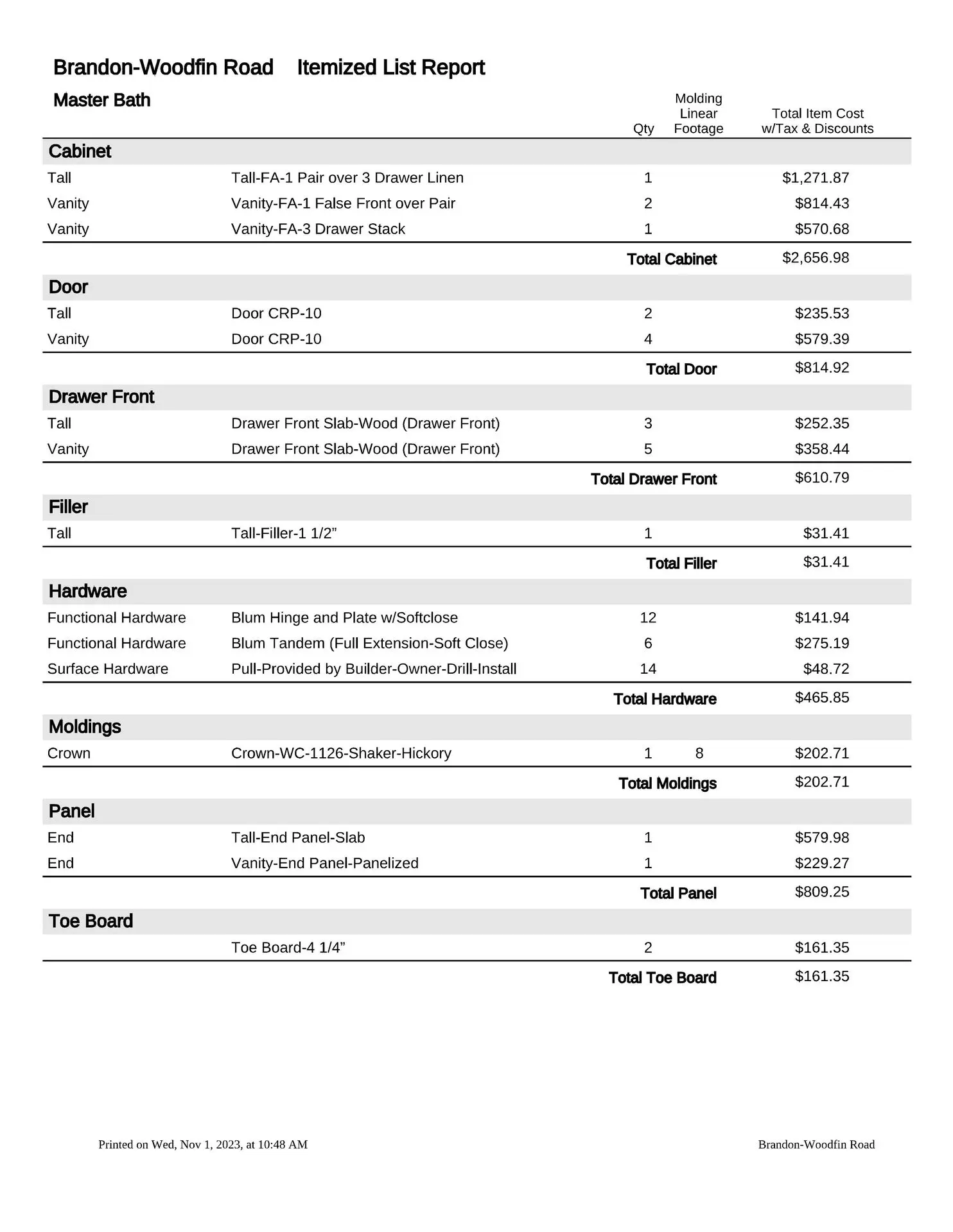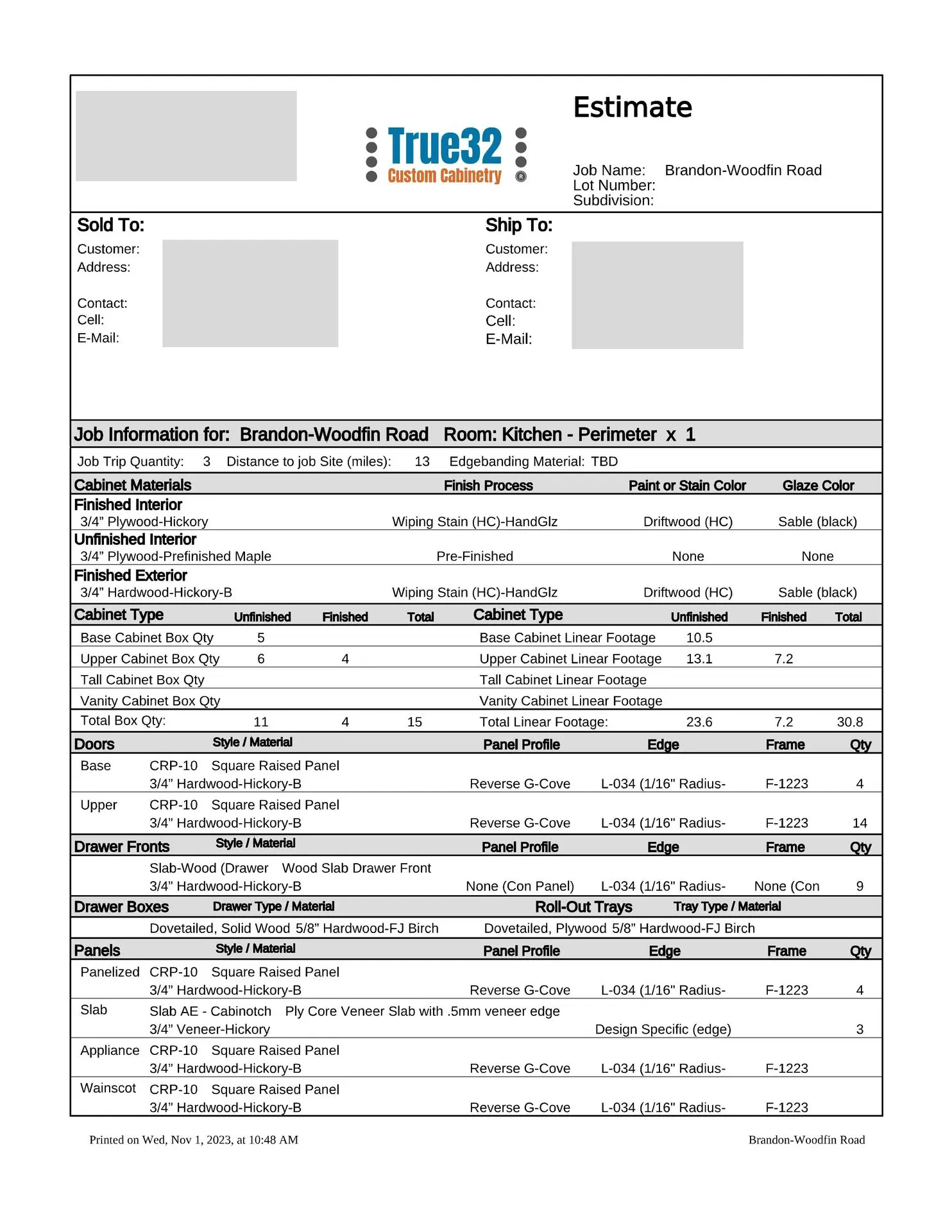 At this point, we will provide you with a formal estimate. These estimates are very detailed and will provide you with the information you need to make a fully educated decision about your custom cabinetry requirements. We are more than happy to provide several alternate pricing scenarios, so please do not hesitate to ask. If you think you might want to upgrade to an applied mold door, upgrade the drawer box, change from slab to raised panel ends, or any other change, addition or subtraction, we will be more than happy to accommodate those change requests (this is the time to do so, not after the manufacturing process has been put into motion).