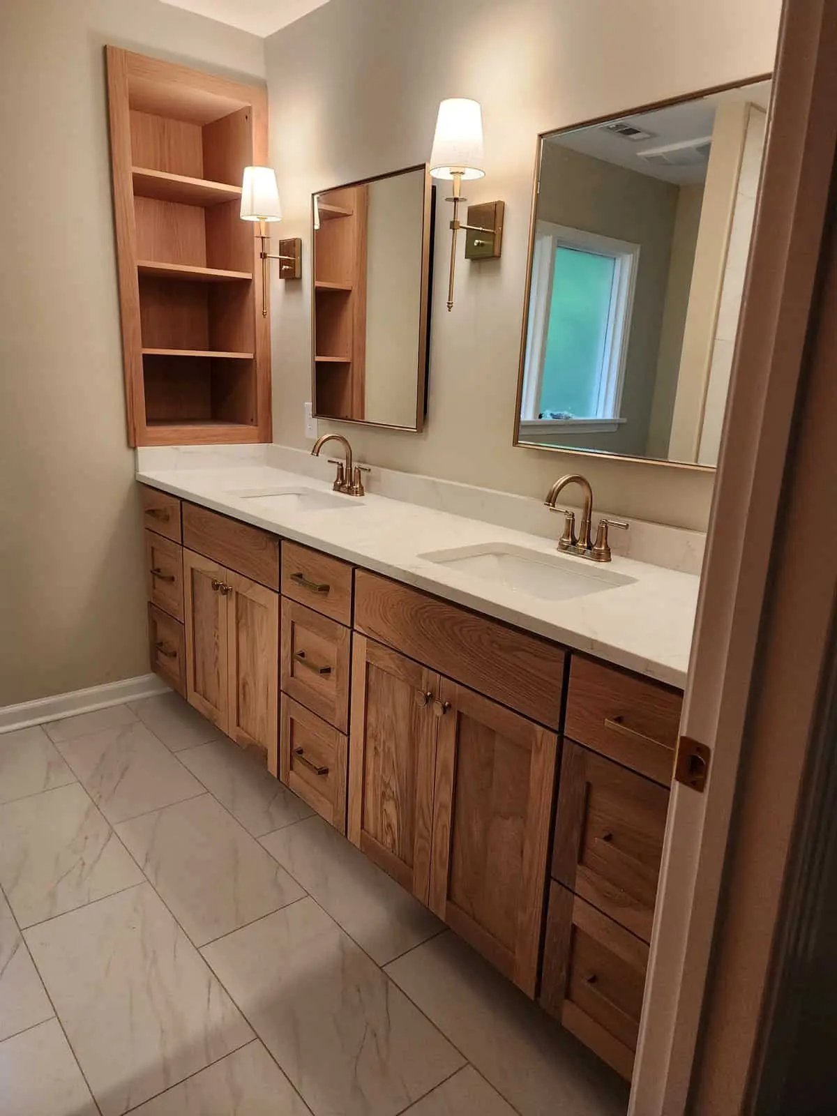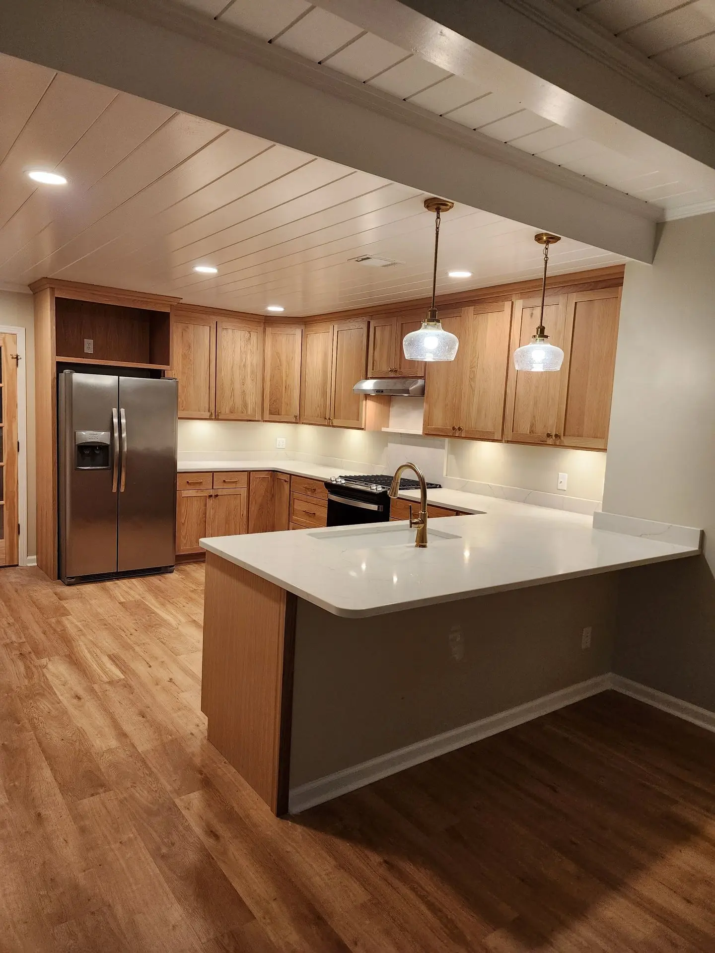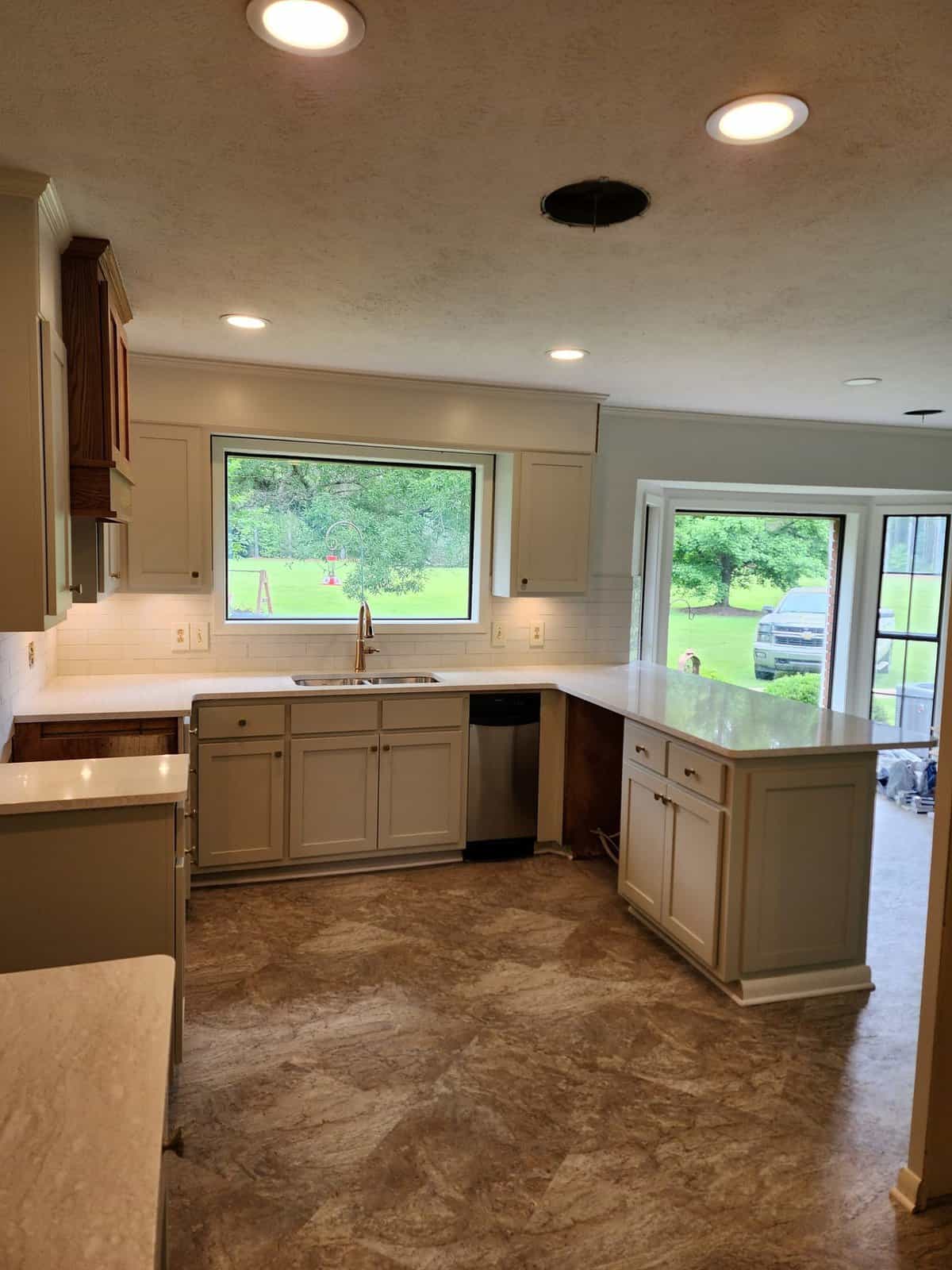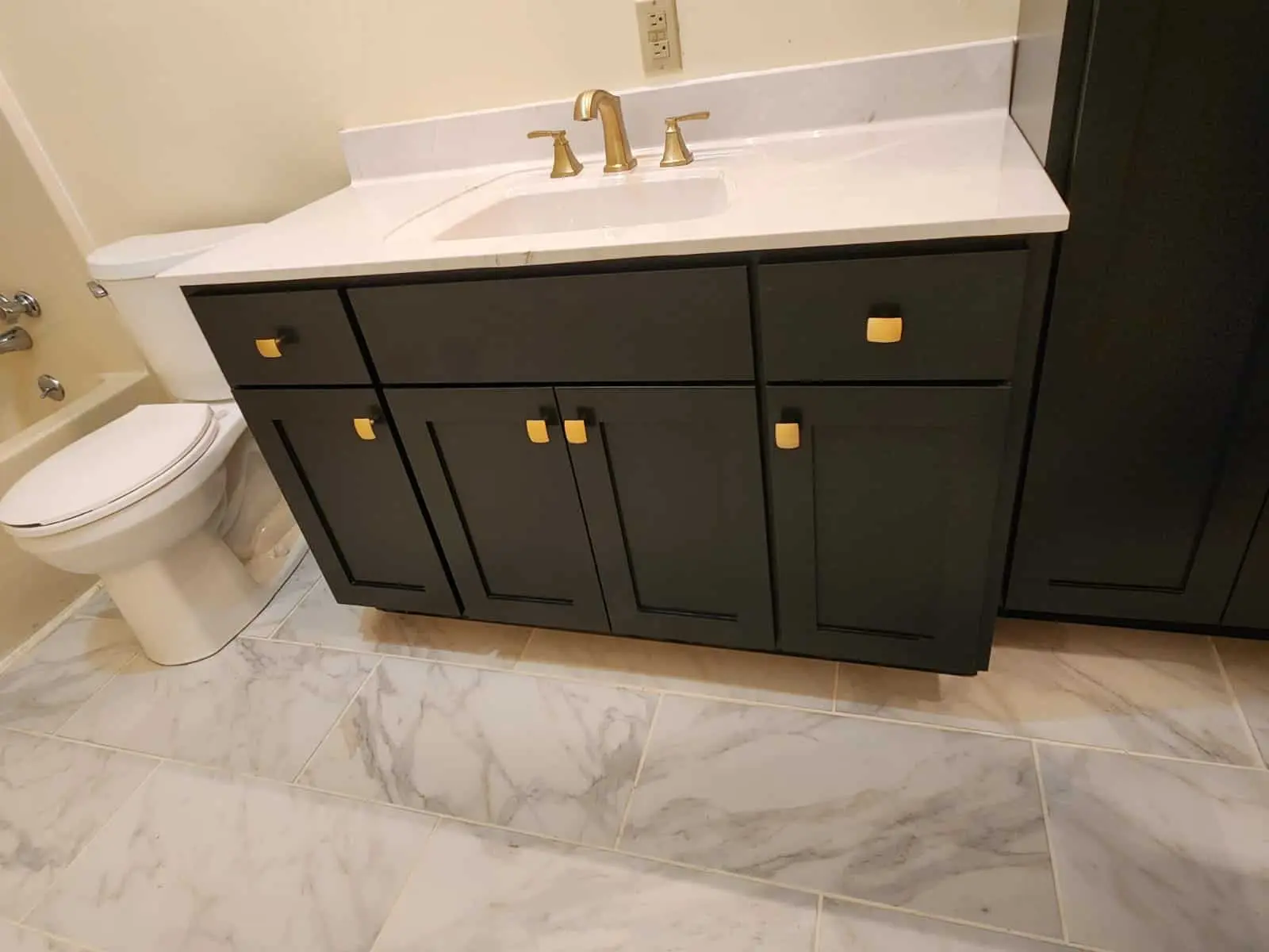 Shaker cabinets are made from a five-piece door, which comprises a four-piece frame with a flat panel in the center. These cabinets are traditionally made from high-quality American wood, but it's now fairly common to see them manufactured from MDF as five-piece or one-piece doors and painted in pretty much any color under the sun. For a more modern look, some homeowners will paint the upper cabinets one color, and then use a different paint or wood stain for the lower cabinets.