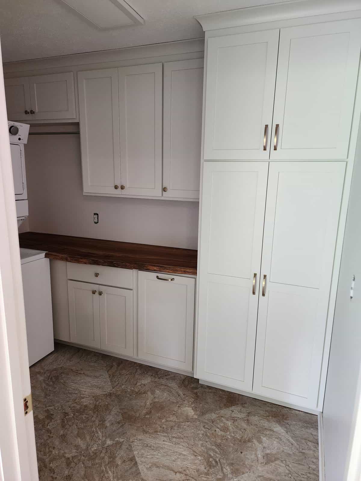 Martha Stewart says that Shaker is the most stylistically versatile cabinet design. Thanks to its simple frame and panel structure, these cabinets blend in with either a traditional or a contemporary look. The style originates from the Shaker religious group that fled to the American colonies in the 1780s; the group became known for their simple, utilitarian, and smart design, including the famous peg rail.