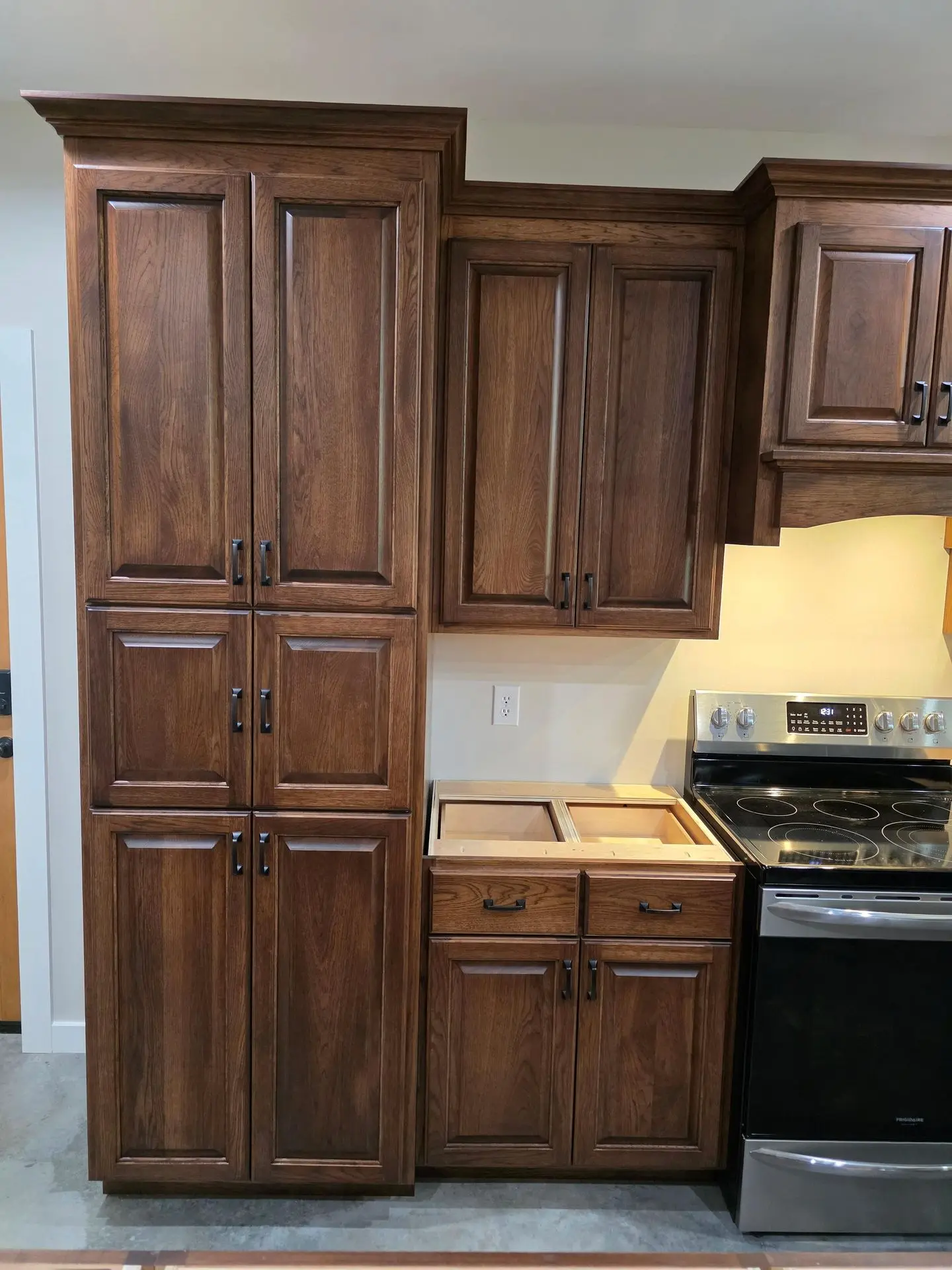 Martha Stewart says that the Traditional style of cabinetry was inspired by the golden age of Europe, and is the most formal cabinetry style, often embellished with ornately carved details. The doors often have raised panels, sometimes featuring an arched design. Traditional cabinets are often found in rich color stained woods or painted woods or composites, but might also be distressed as well as treated with an antiquing and/or glazing effect.